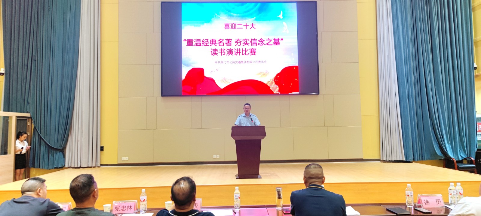 ? ? 最后,市政府國資委黨委委員、副主任張斌代表國資委黨委發(fā)表了講話。首先,他對受到表彰的先進個人和集體表示祝賀,并就公交2021年以來公交改革發(fā)展中作出的成績予以了肯定,并寄予了四點殷切希望:一是要讓“讀經(jīng)典、講經(jīng)典、寫經(jīng)典”成為日常生活的一種常態(tài);二是要鞏固擴大“重溫經(jīng)典名著 夯實信念之基”讀書分享活動成果;三是掀起黨史學(xué)習(xí)教育熱潮,深入推動黨員干部下基層察民情解民憂暖民心實踐活動深入開展;四是要結(jié)合當(dāng)前是公交后疫情時代千方百計增收入、紓困解難求發(fā)展的關(guān)鍵時期,立足本職崗位,堅定理想信念,用于擔(dān)當(dāng)作為、奮力開拓創(chuàng)新公交發(fā)展凝聚起強大的精神動力。最后,他預(yù)祝“重溫經(jīng)典名著 夯實信念之基”讀書演講比賽取得圓滿成功,參賽選手們賽出成績、賽出水平、賽出風(fēng)格。
