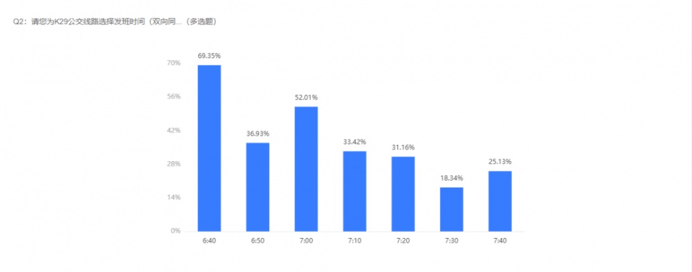 2022年11月18日,市公交集團(tuán)對(duì)《K29公交線路運(yùn)行方案》進(jìn)行了問(wèn)卷調(diào)查,截止2022年11月23日12時(shí),本次問(wèn)卷調(diào)查結(jié)束。K29公交線路開(kāi)通時(shí)間擬定為2022年11月28日,營(yíng)運(yùn)方案以市民投票結(jié)果執(zhí)行。