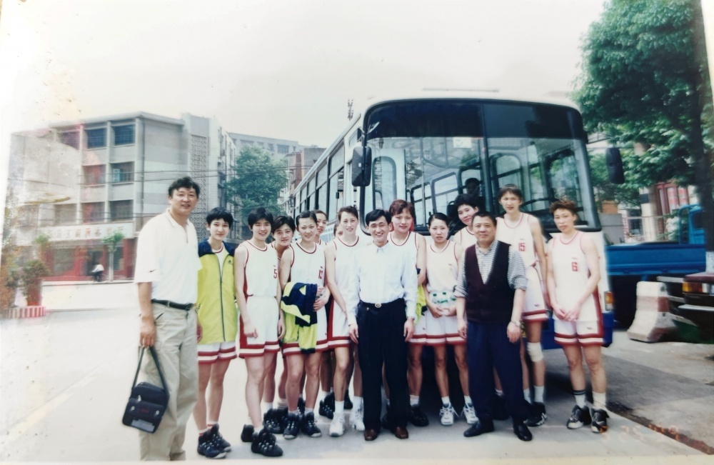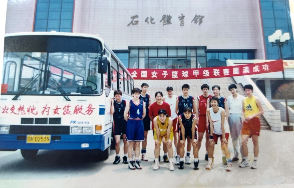 ▲1999年5月25日,沈陽電梯隊在公交車旁合影留戀。從“中國籃球大事記”查閱到,1999年全國女子籃球甲級聯(lián)賽,沈陽電梯隊奪得了當(dāng)年聯(lián)賽冠軍。