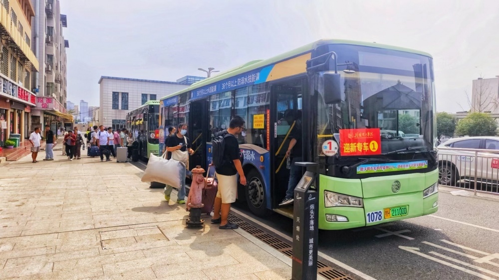 9月6日早上6點00分,市公交集團(tuán)將掛有“迎新專車”牌子的定制專車車隊,整齊地??吭诨疖囌颈睆V場進(jìn)行等待。