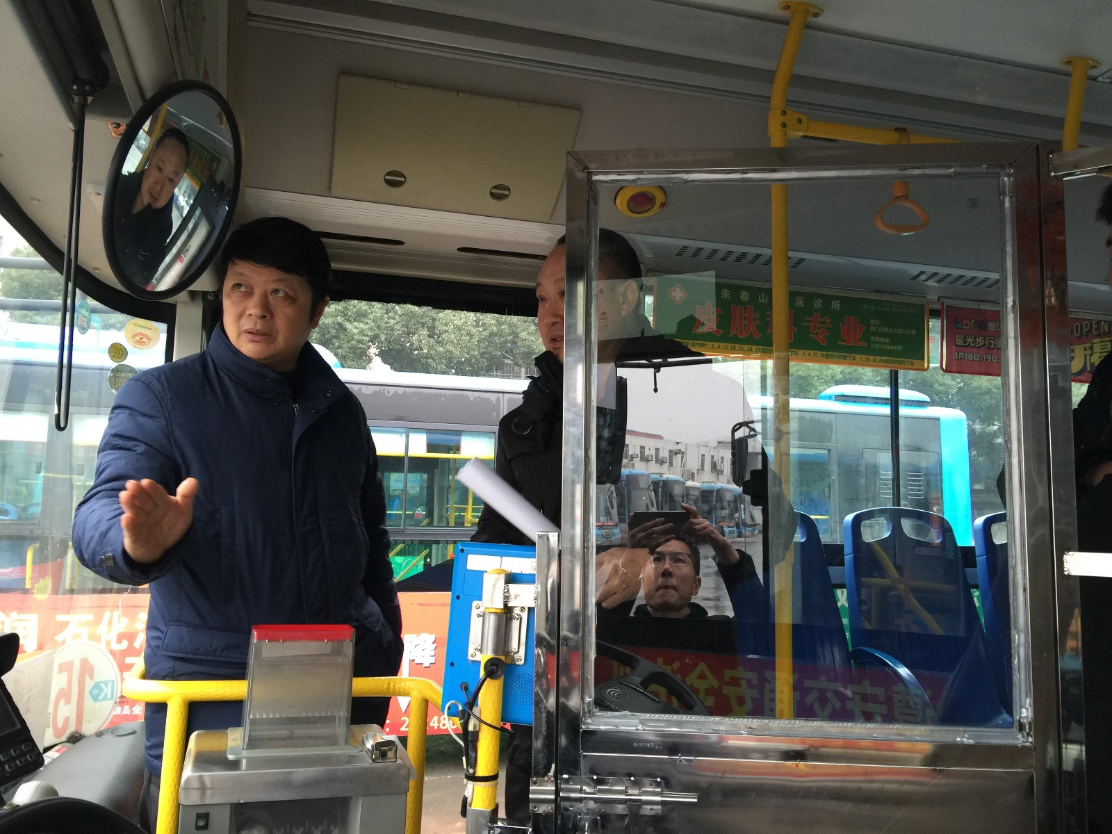 市交投公司黨委委員、荊門公交集團董事長趙吉美匯報有關(guān)情況,督查組一行查看了公交集團公司兩臺公交駕駛室防護裝置樣品車輛情況,和企業(yè)負責人現(xiàn)場研究生命防護裝置設(shè)置樣式,本著安全、美觀、經(jīng)濟的原則確定了下一步安裝的標準。