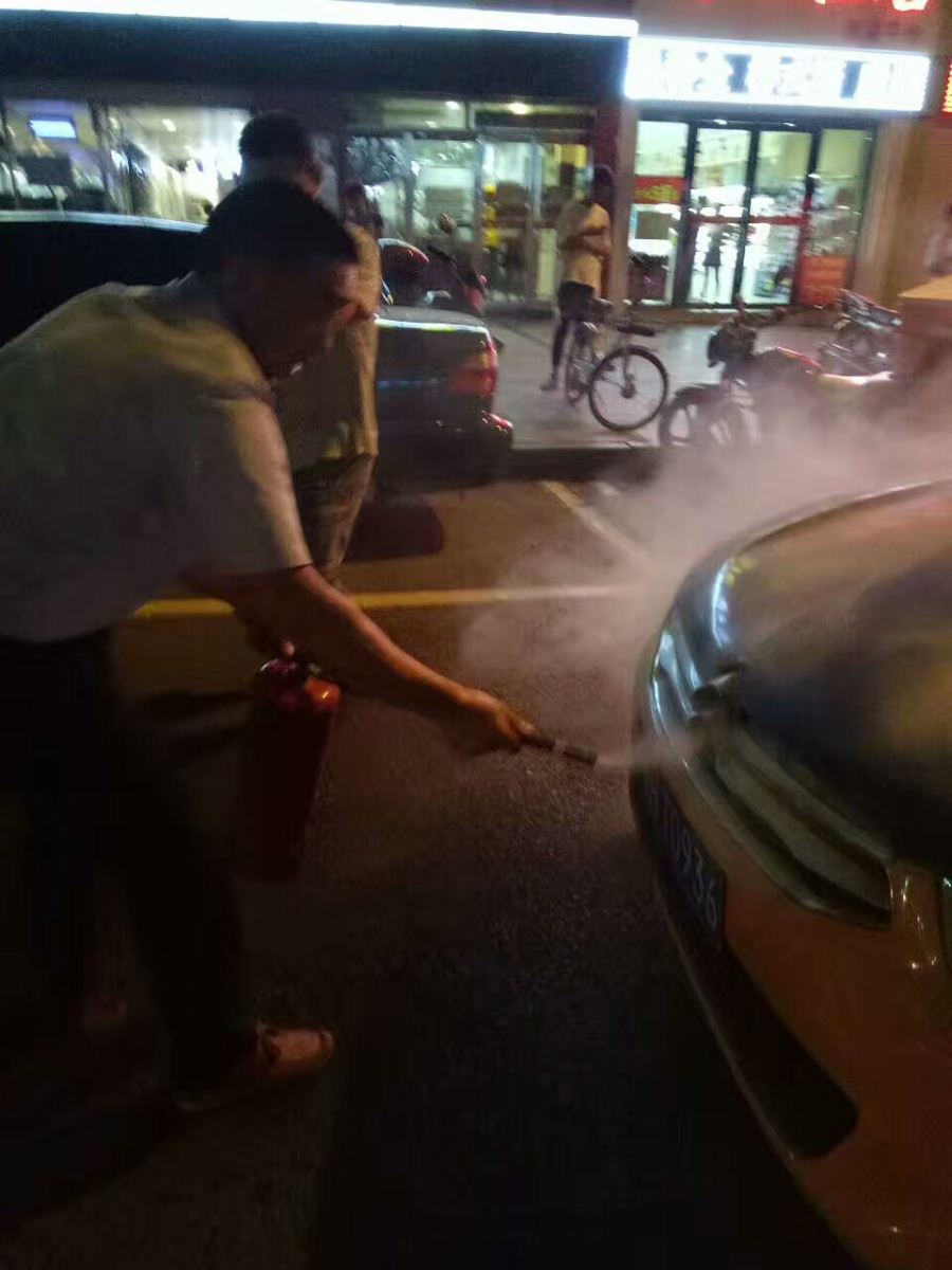 7月21日晚9時(shí)10分左右,公交集團(tuán)三公司2路車(chē)駕駛員陳旭駕駛鄂H0A073號(hào)行駛至金地廣場(chǎng)站,突然聽(tīng)到馬路對(duì)面有人大聲疾呼“著火啦!救火!”,陳師傅忙停穩(wěn)車(chē),只見(jiàn)對(duì)面一的士引擎蓋冒煙起火,他立即拿起公交車(chē)上的滅火器快跑到馬路對(duì)面,將出租車(chē)的火撲滅。