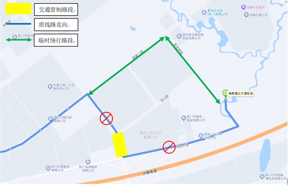 調(diào)整線路走向:原荊南大道—楊樹(shù)港路—常興路—龍井大道段調(diào)整為荊南大道—楊樹(shù)港路—福耀二路(東段)—龍井大道
